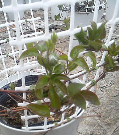 花びらが散ってきたら花首ごと取り除きます、そのままにしておくと種が出来て栄養を吸収して後の花が咲かなくなります。秋から冬秋が深くなると葉が枯れ成長が止まりますので水やりをやめそのまま屋外に放置して寒さに当てるようにします。春梅の花が終わる頃には枯れたような蔓の芽がふくらんで来ます。力強い芽を残して蔓を切り詰めます、この時ひと回り大きな鉢に植え替えてあげましょう。