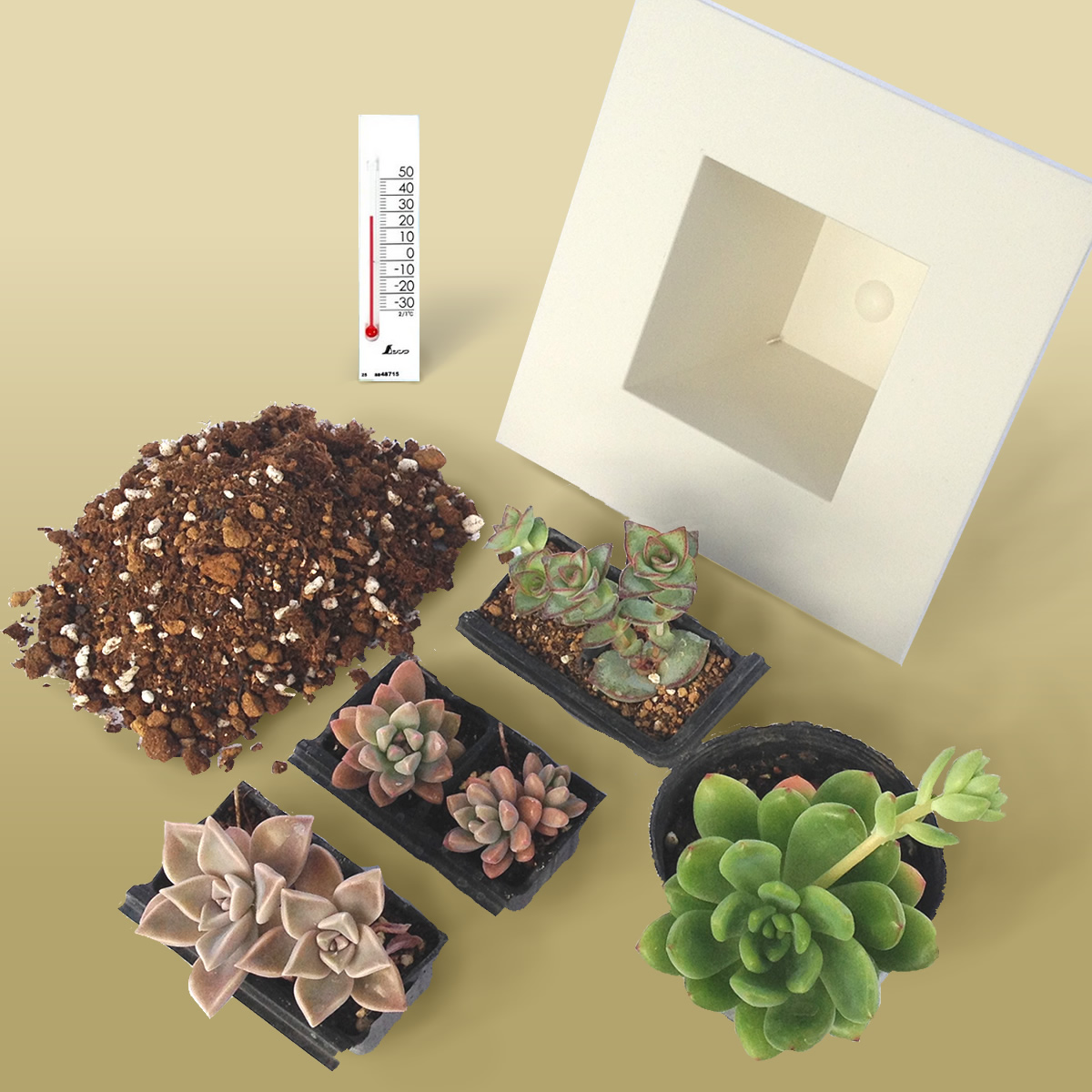 フレームポット+温度計+多肉7点+培養土
