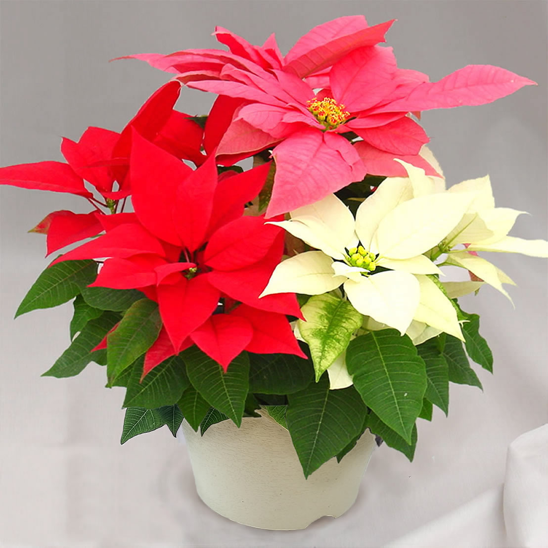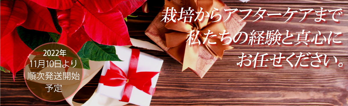 明け方の室温は10℃以上が理想で、土の表面が乾いたら十分にお水をやってください。強い根を持ったタフな当店のポインセチアは、環境が合えば4月頃まで十分に鑑賞できますよ。