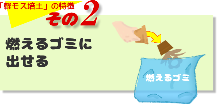 軽く・清潔な「カルモス培土」。不要になったら可燃ごみに出せます。